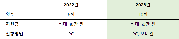 또, 현재 2023년 1차 모집 시 신청하는 경우 2022년 12월 면접 응시 건에 한하여 소급 신청도 가능하다. 단 신청인의 22년 면접 수당 신청 횟수(최대 6회) 잔여분이 있어야 가능하다.