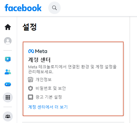 STEP2. 왼쪽 상단 Meta 계정센터 선택