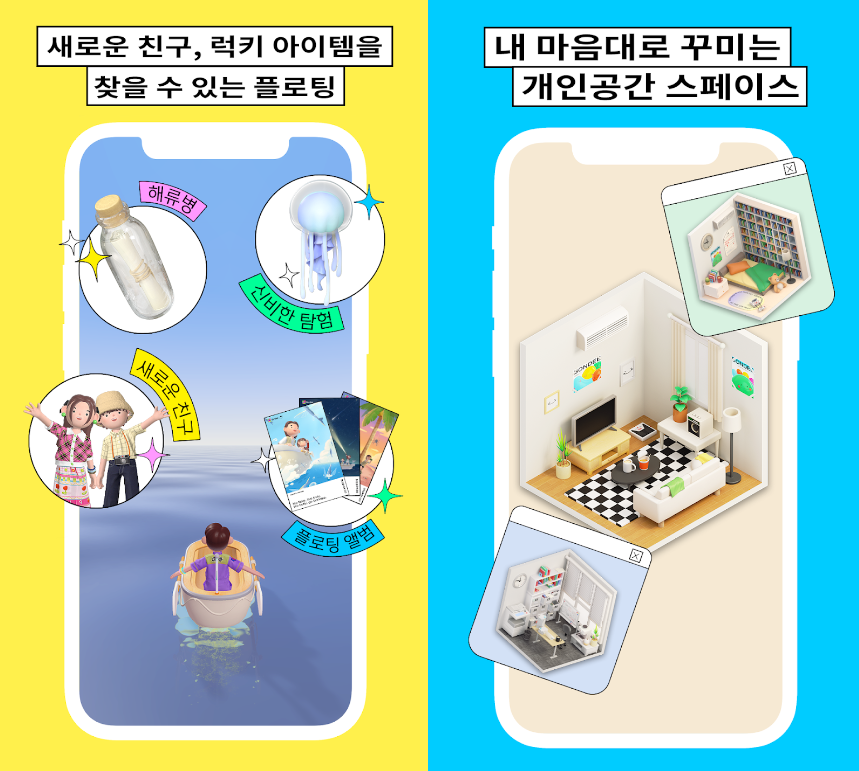 플로팅 하며 새로운 친구, 아이템도 찾고 아파트 구경도 하고 내상태 사진, 동영상도 업데이트하고 sns처럼 즐긴다.