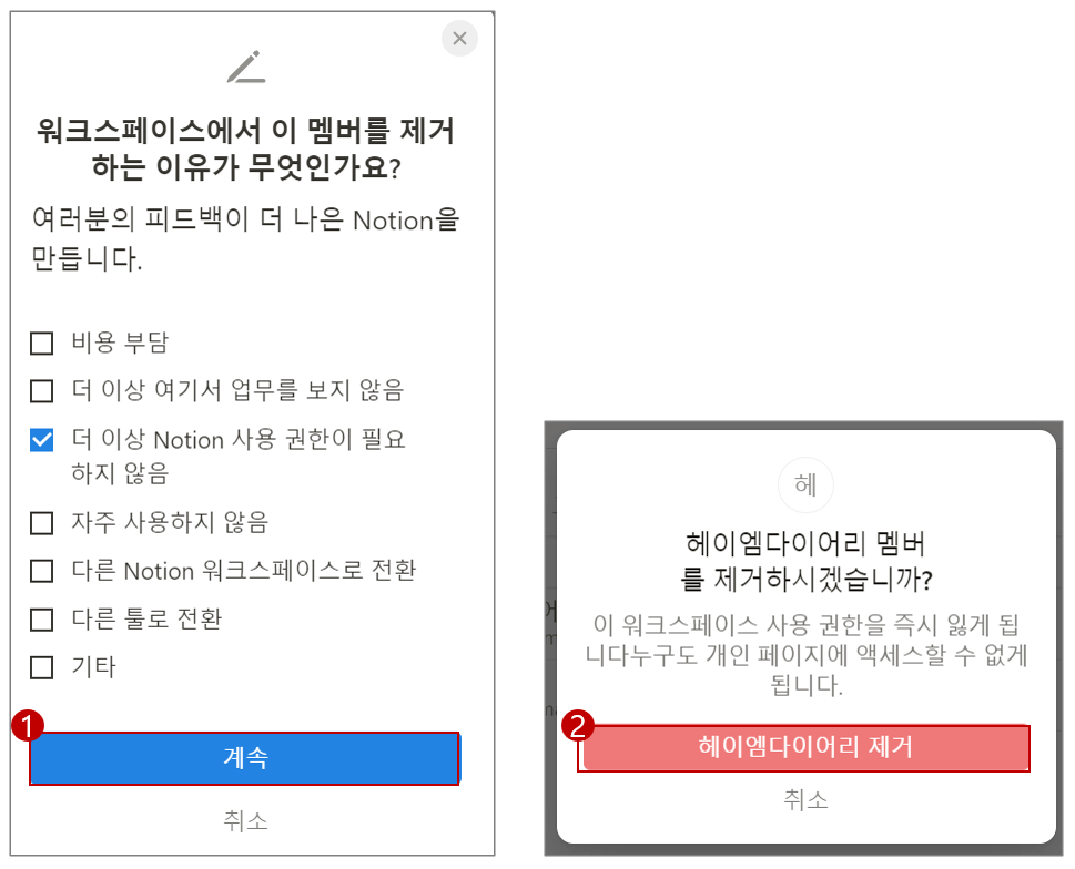 노션 멤버 삭제하기